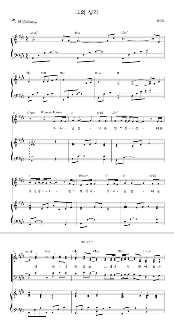 | 그의 생각 | 성가 2부 + 피아노 반주 |