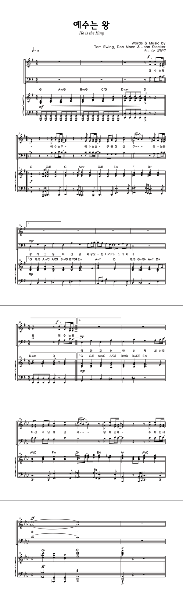 | 그는 여호와 창조의 하나님 | 성가 4부 + 피아노 반주 |