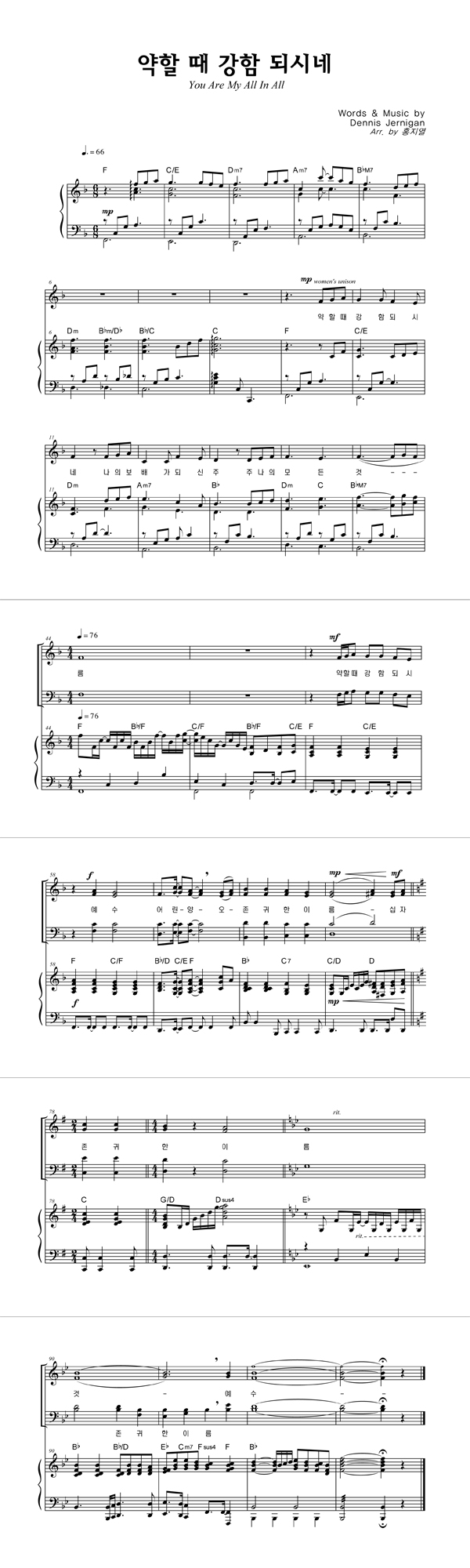 | 나 주님의 기쁨 되기 원하네 | 성가 4부 + 피아노 반주 |