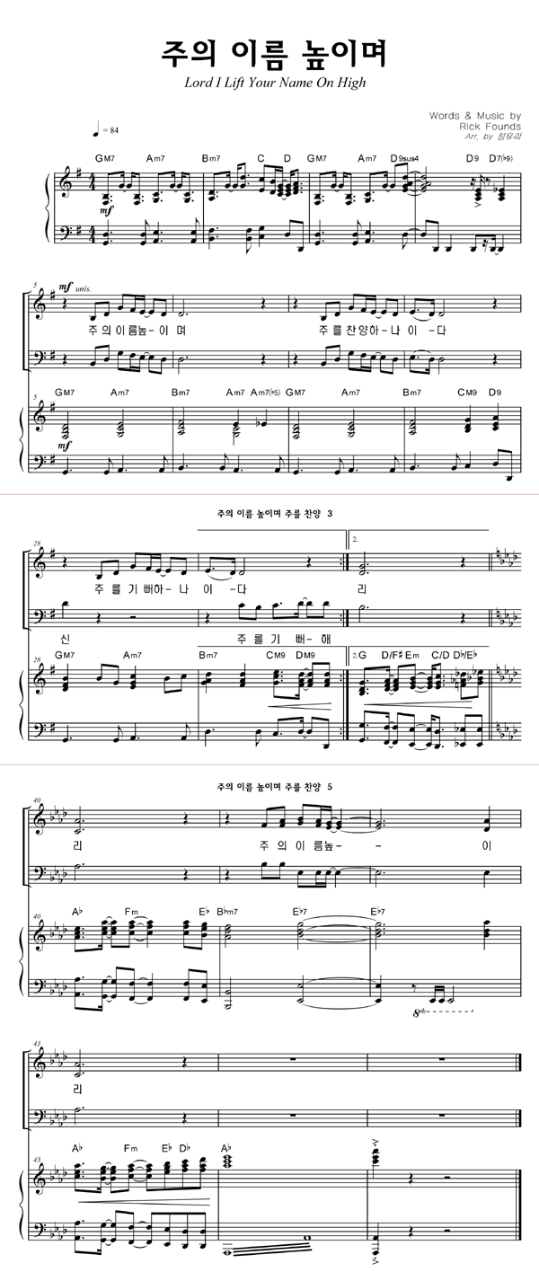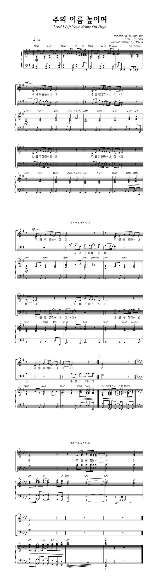 | 주의 이름 높이며 | 성가 4부 + 피아노 반주 |