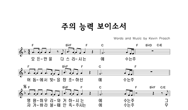 | 주의 이름 높이며 큰글씨 | 성가 2부 + 피아노 반주 |