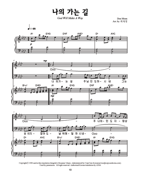 | 나의 가는 길 | 성가 4부 + 피아노 반주 |