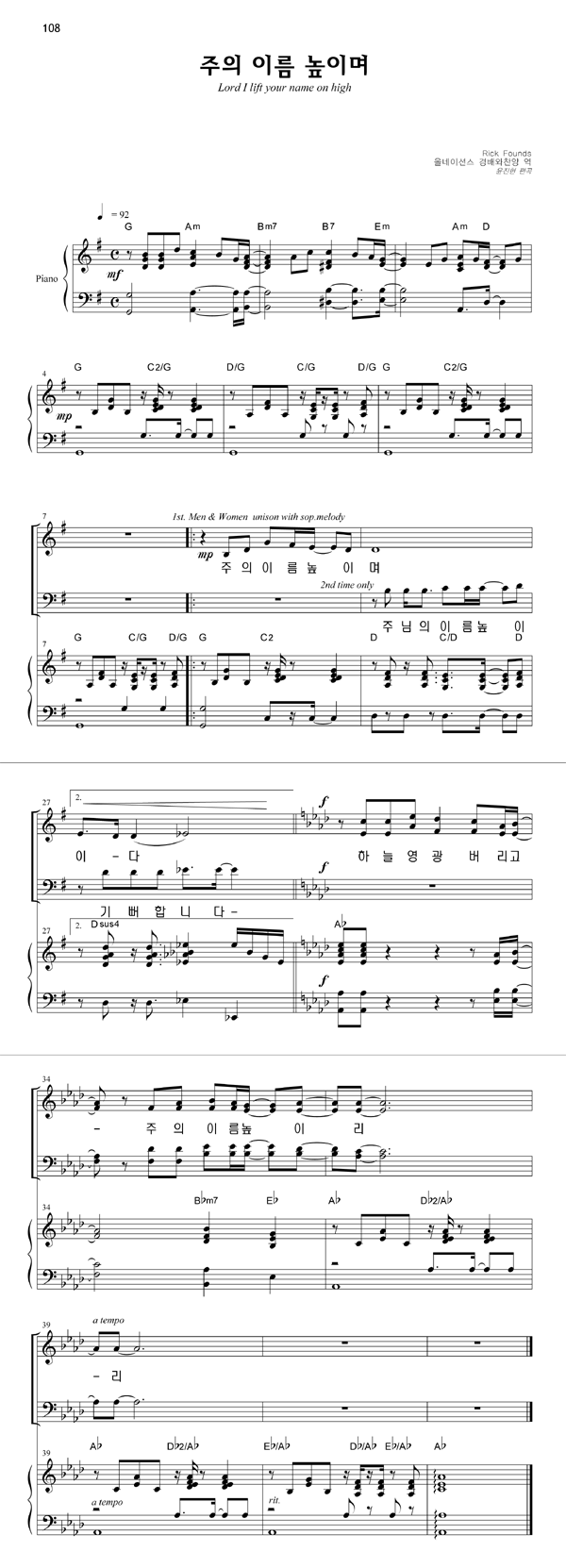 | 주의 이름 높이며 | 성가 2부 + 피아노 반주 |