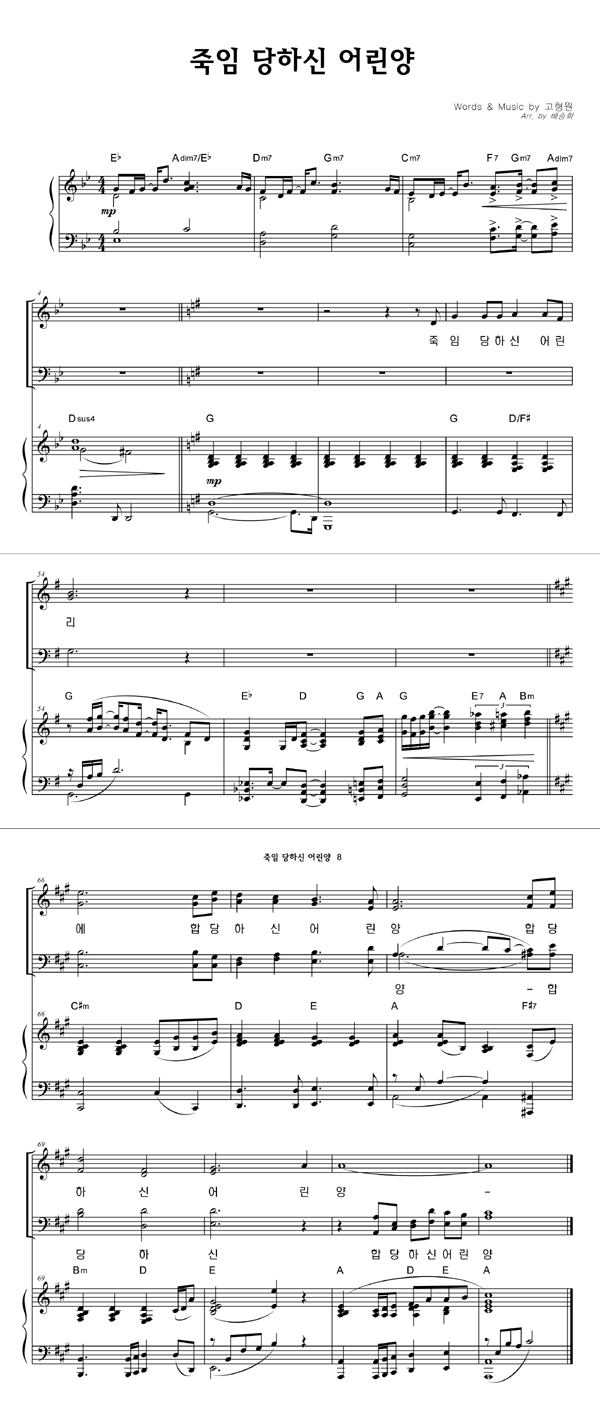 | 죽임 당하신 어린 양 | 성가 2부 + 피아노 반주 |