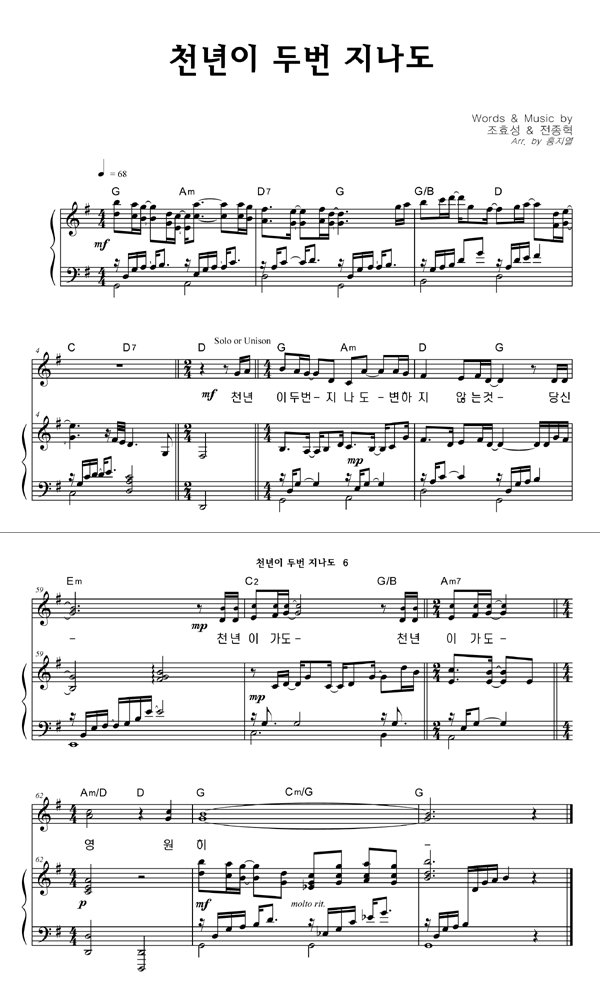 | 천년이 두번 지나도 | 성가 2부 + 피아노 반주 |