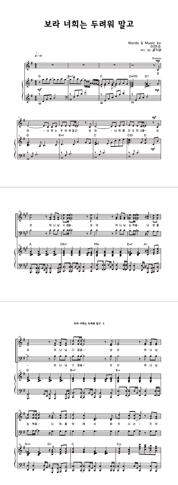 | 주의 이름 높이며 큰글씨 | 성가 3부 + 피아노 반주 |