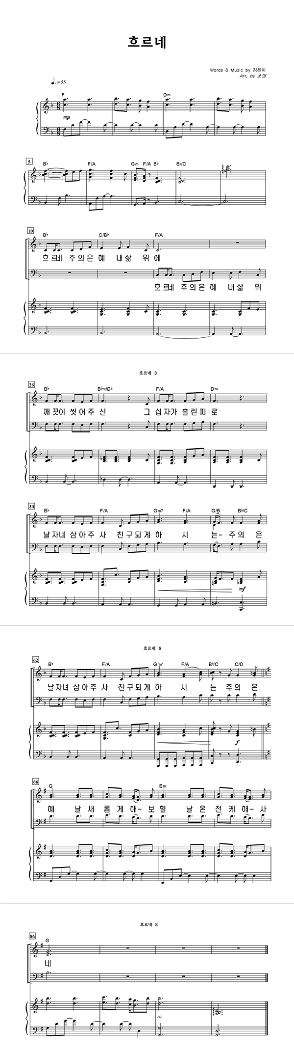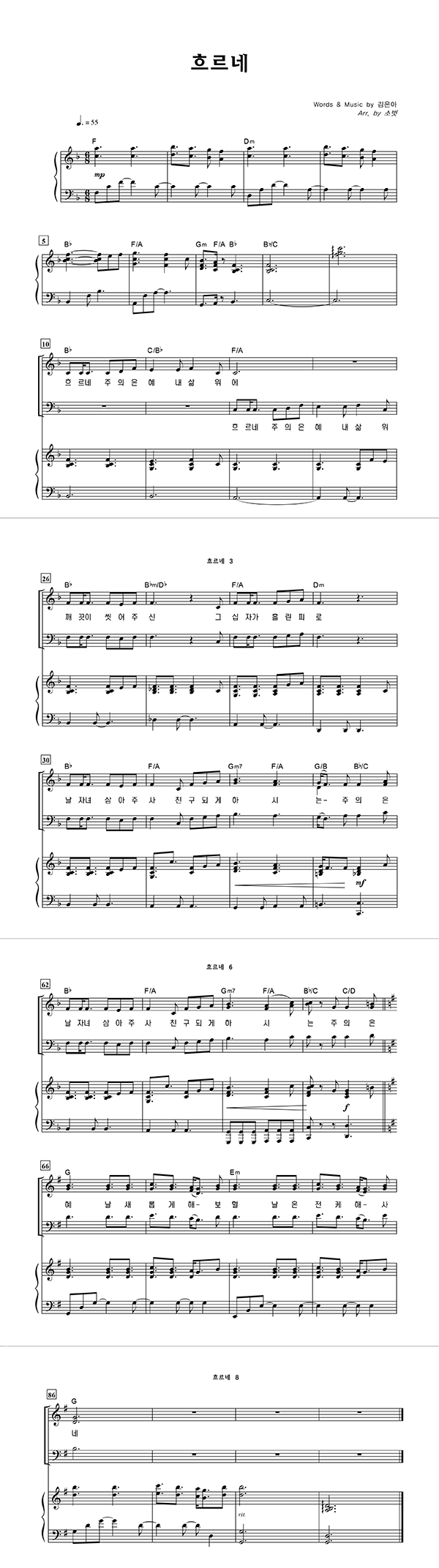 | 흐르네 | 성가 2부 + 피아노 반주 |