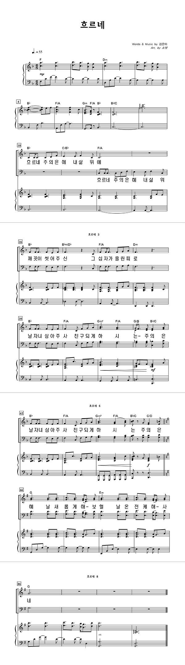| 흐르네 | 성가 4부 + 피아노 반주 |