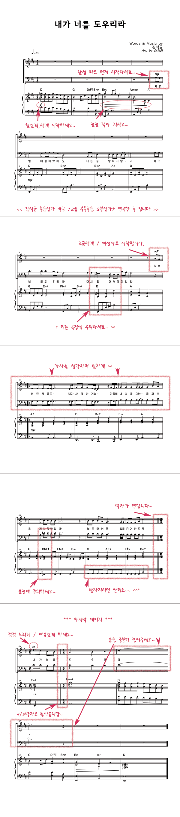 | 내가 너를 도우리라 | 성가 3부 + 피아노 반주 |