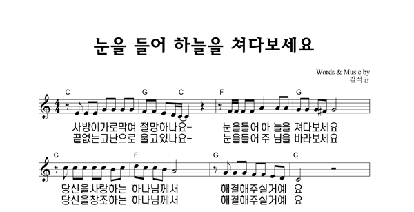 | 눈을 들어 하늘을 쳐다 보세요 | 성가 4부 + 피아노 반주 |