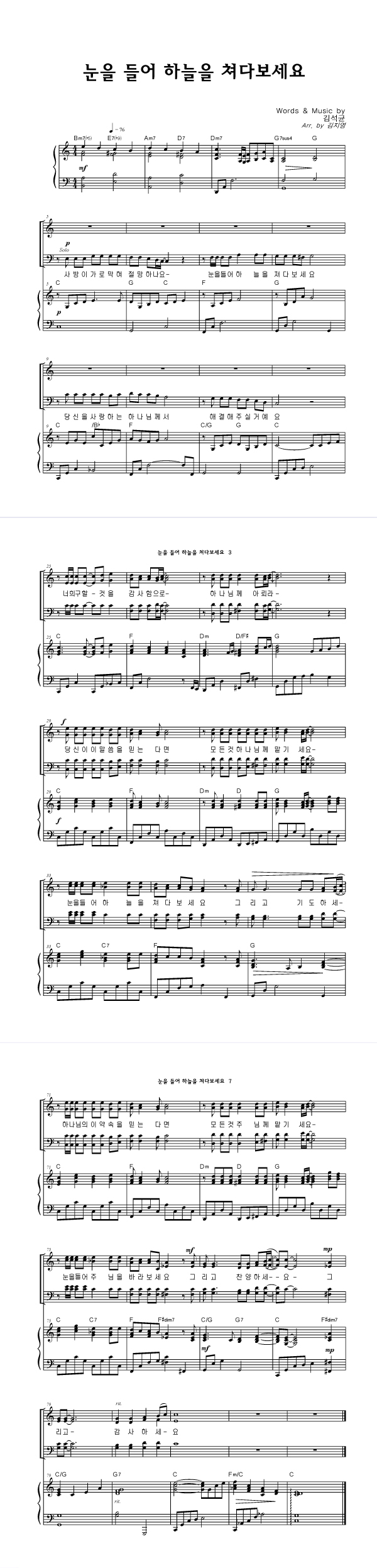 | 눈을 들어 하늘을 쳐다 보세요 | 성가 3부 + 피아노 반주 |