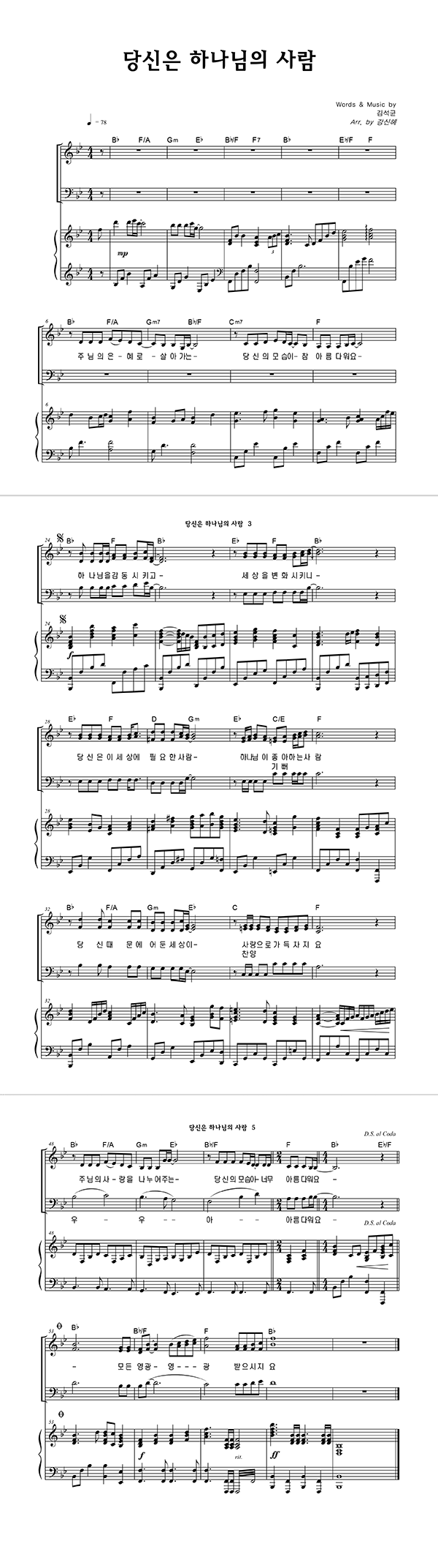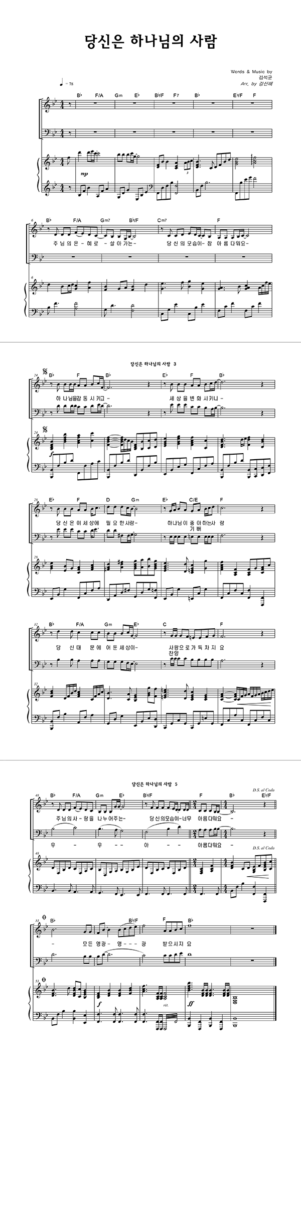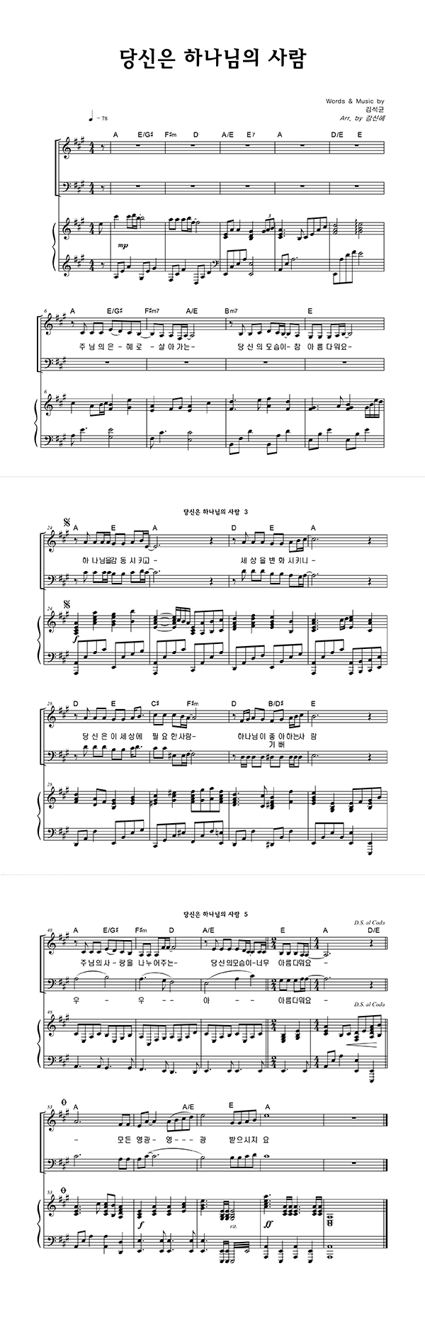 | 당신은 하나님의 사람 | 성가 3부 + 피아노 반주 |