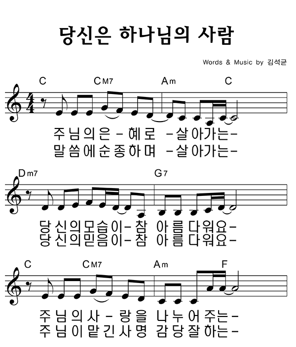 '당신은 하나님의 사람' 의 다른 악보형식