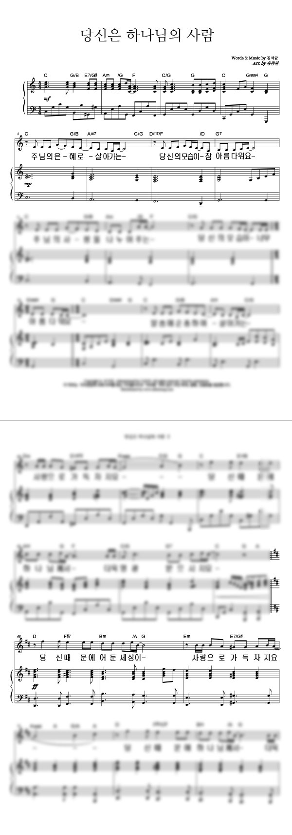 | 당신은 하나님의 사람 | 성가 2부 + 피아노 반주 |