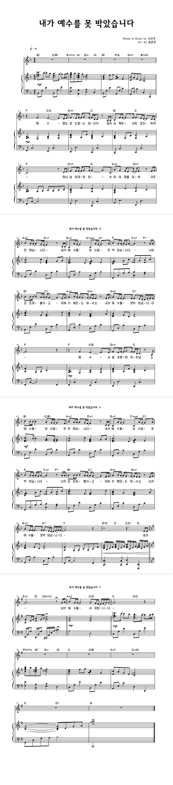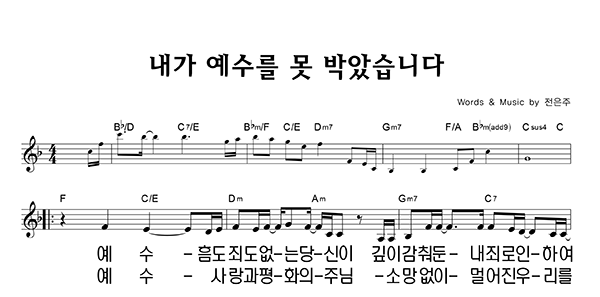 '내가 예수를 못 박았습니다' 의 다른 악보형식