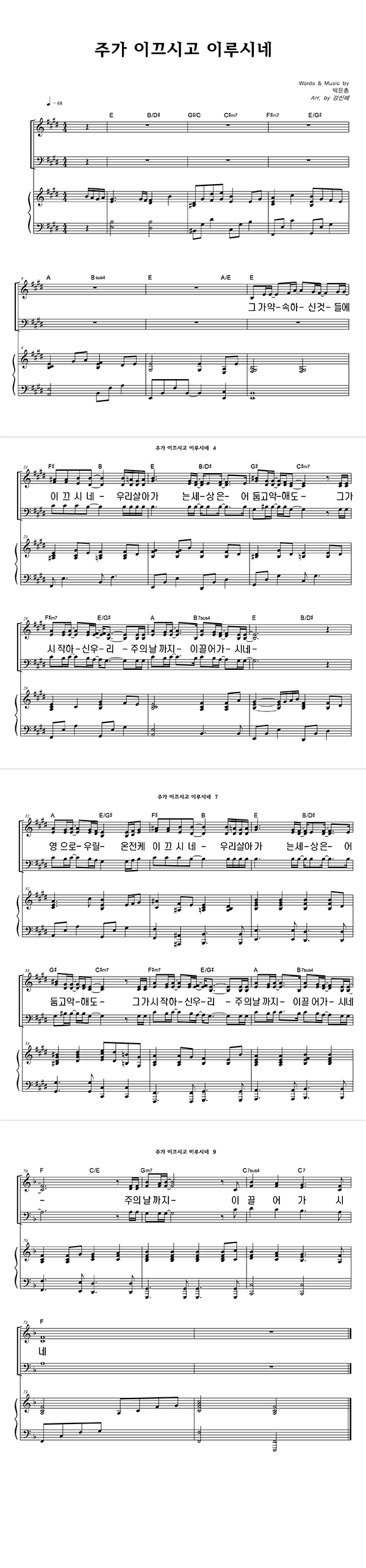| 주가 이끄시고 이루시네 | 성가 3부 + 피아노 반주 |