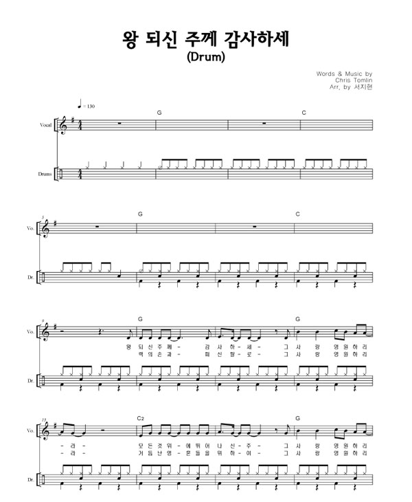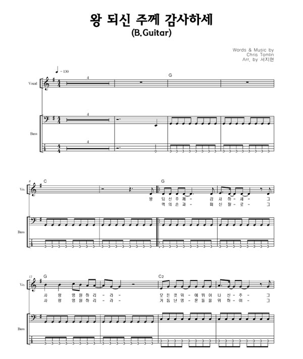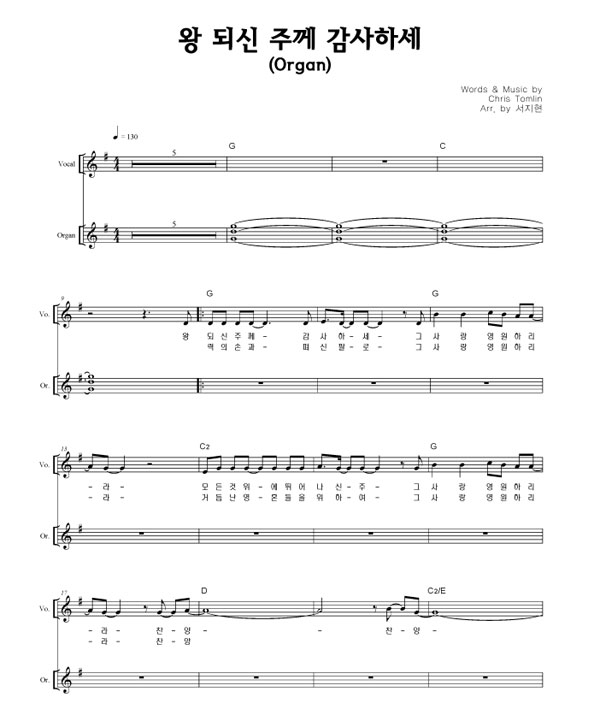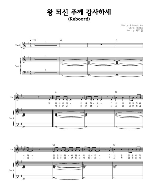 | 왕 되신 주께 감사하세 | 성가 2부 + 피아노 반주 |