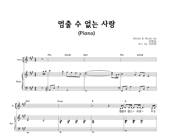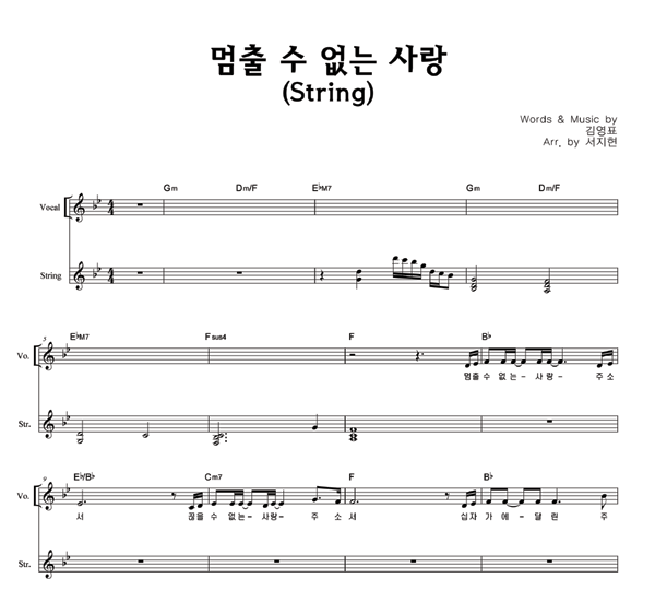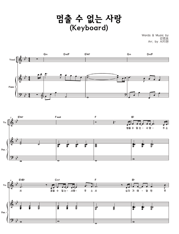| 멈출 수 없는 사랑 | 성가 2부 + 피아노 반주 |