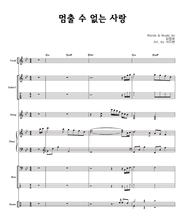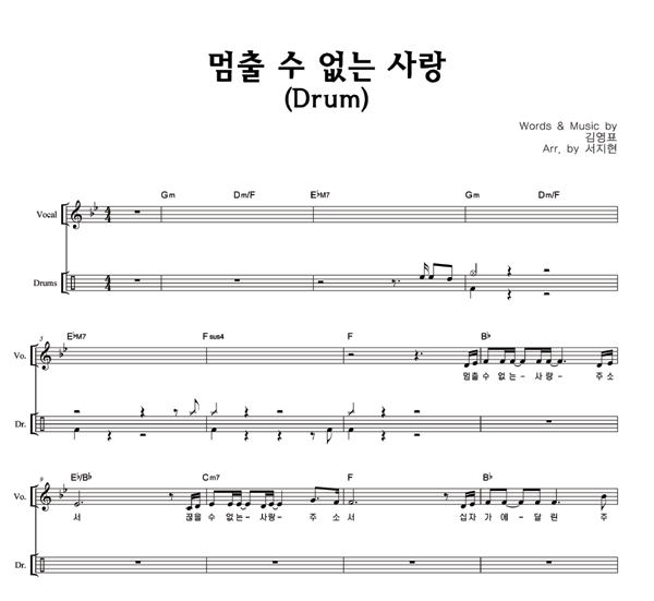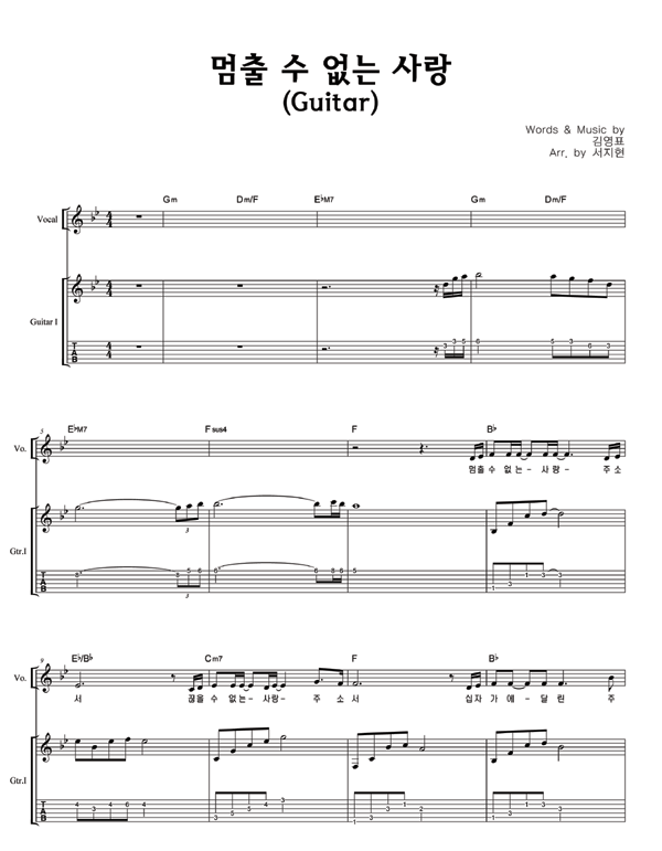 '멈출 수 없는 사랑' 의 다른 악보형식