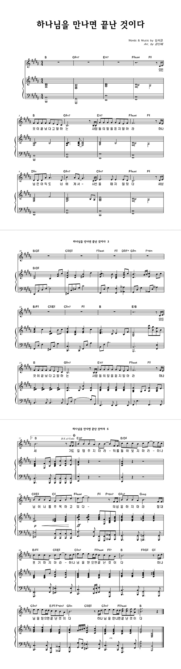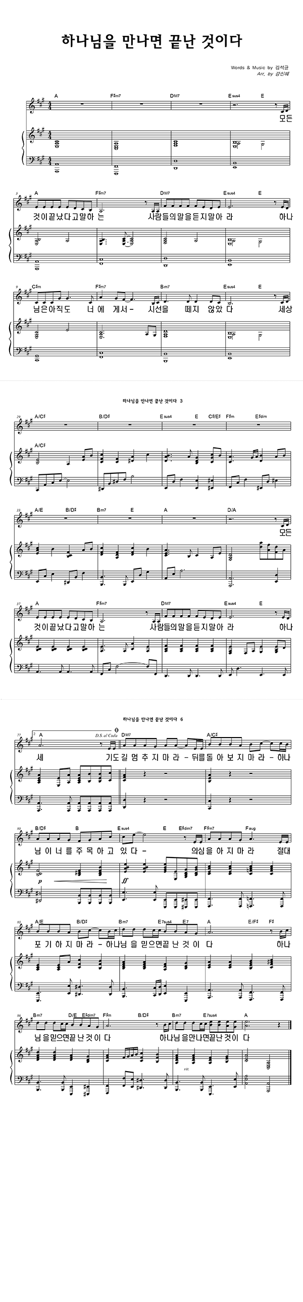 | 하나님을 만나면 끝난 것이다 | 성가 4부 + 피아노 반주 |