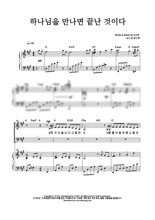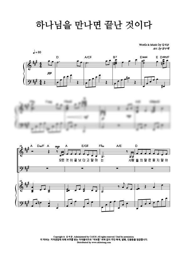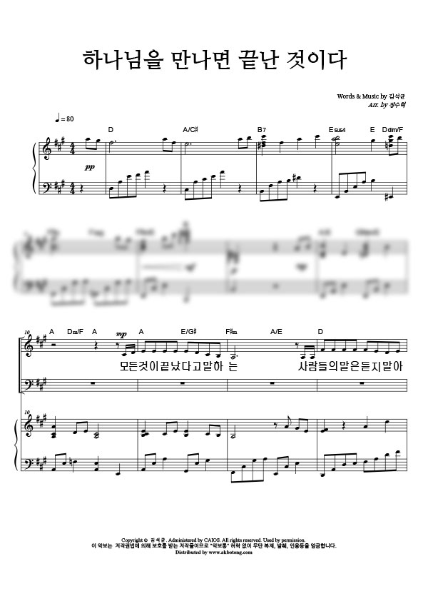 | 하나님을 만나면 끝난 것이다 | 성가 3부 + 피아노 반주 |