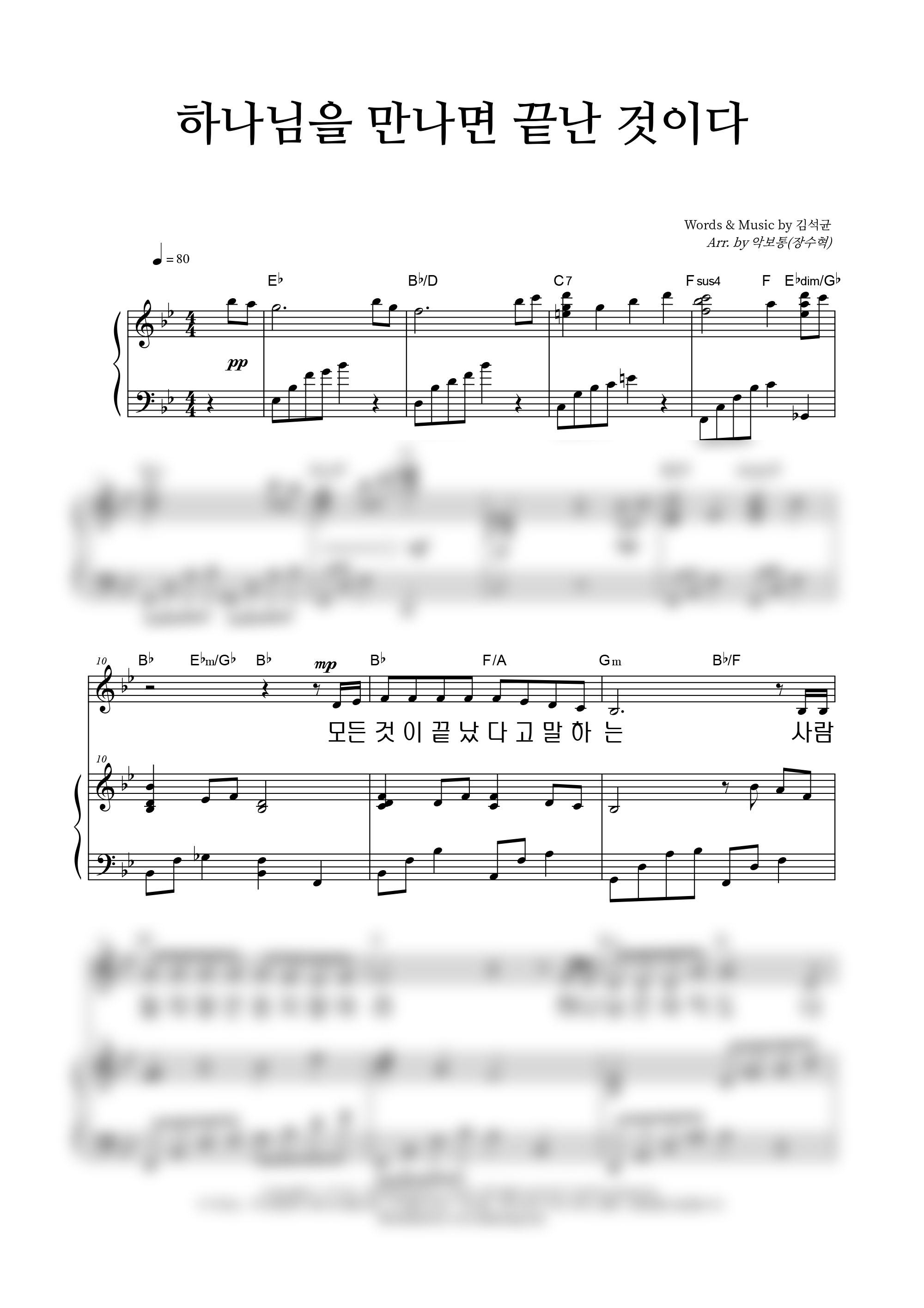 '하나님을 만나면 끝난 것이다' 의 다른 악보형식