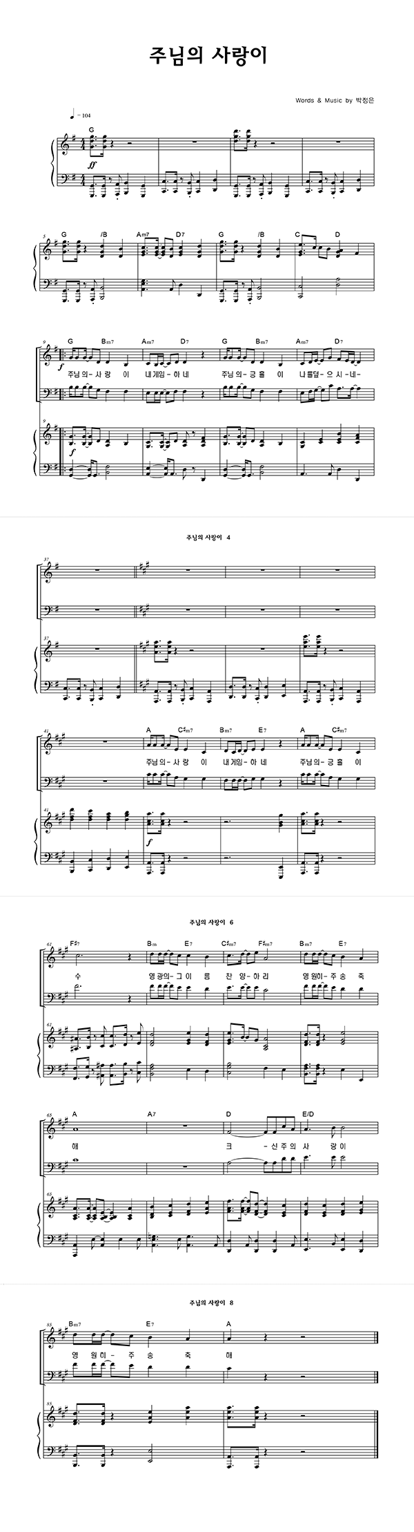 '주님의 사랑이' 의 다른 악보형식