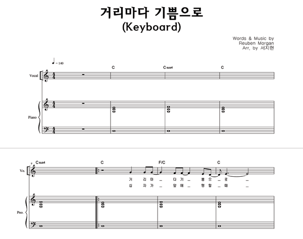 '거리마다 기쁨으로' 의 다른 악보형식