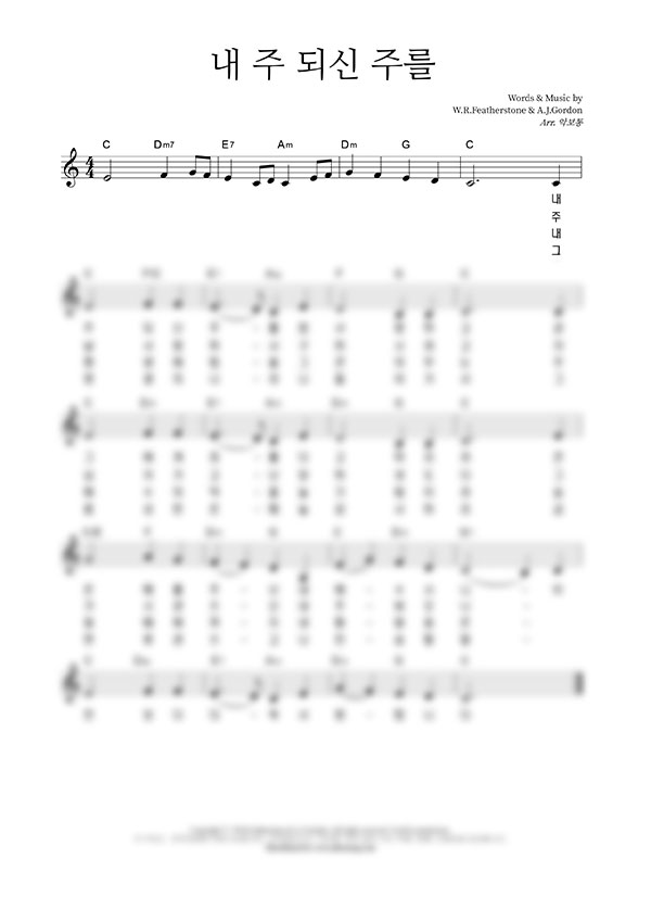 | 내 주 되신 주를 참 사랑하고 (찬송가 315장) | 성가 4부 + 피아노 반주 |