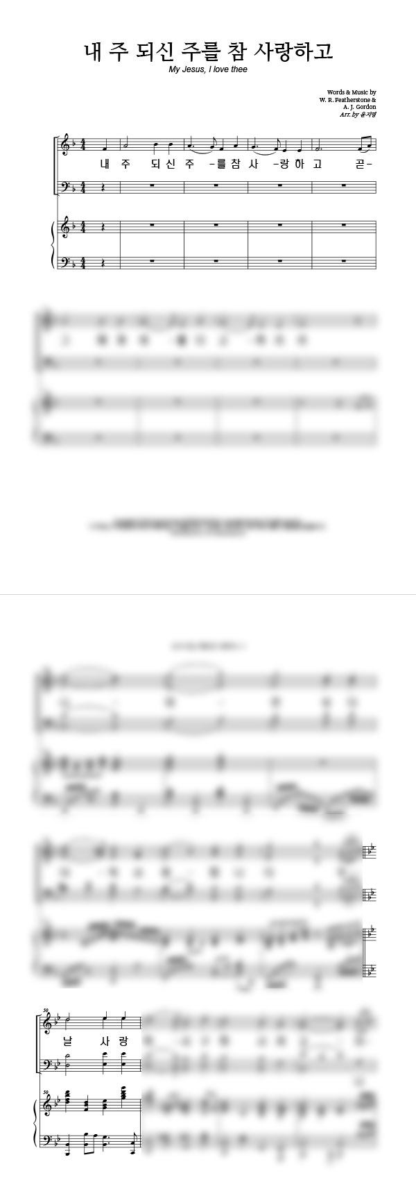 | 주를 향한 나의 사랑을 | 성가 4부 + 피아노 반주 |