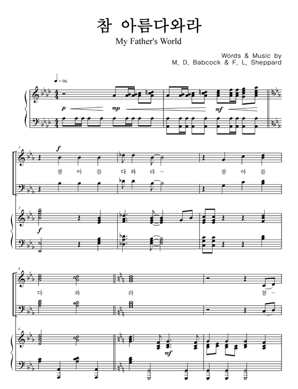| 참 아름다와라 | 성가 4부 + 피아노 반주 |