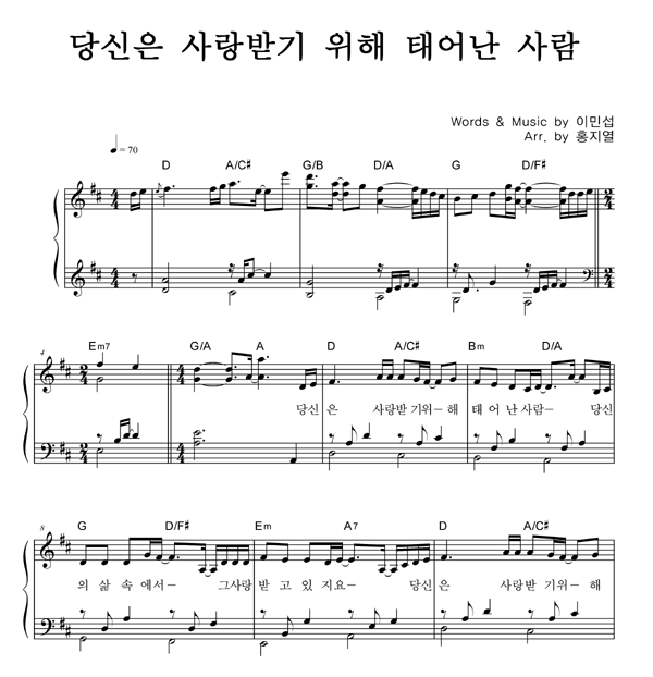 | 당신은 사랑 받기 위해 태어난 사람 | 성가 4부 + 피아노 반주 |