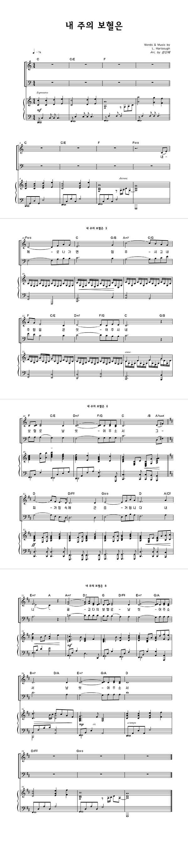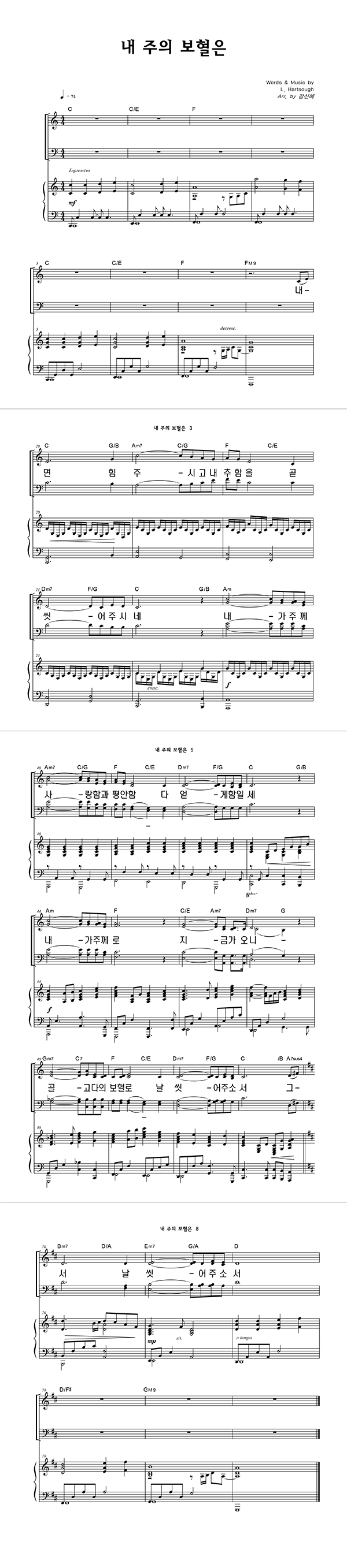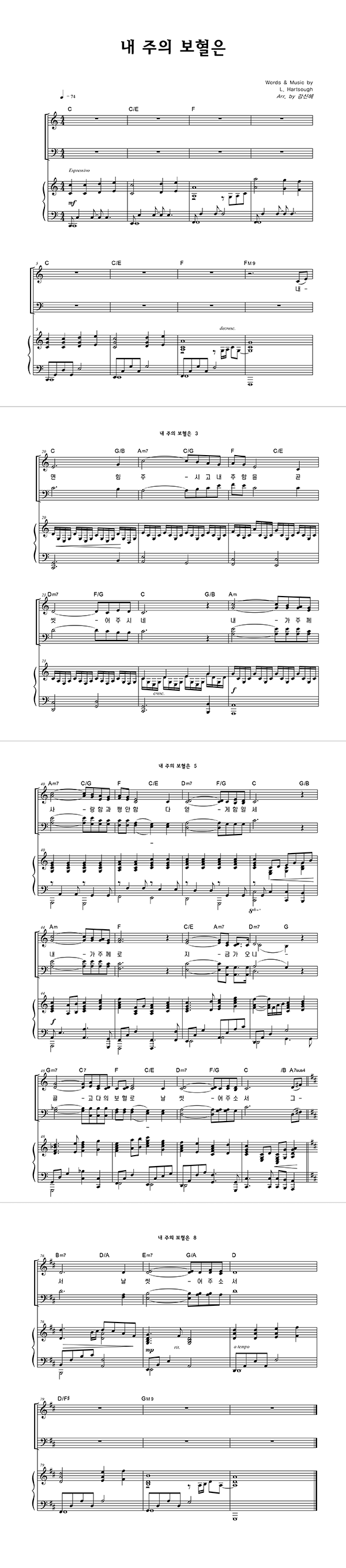 | 내 주의 보혈은 | 성가 4부 + 피아노 반주 |