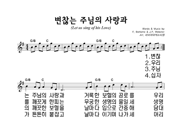 | 변찮는 주님의 사랑과 큰글씨 | 단선 |