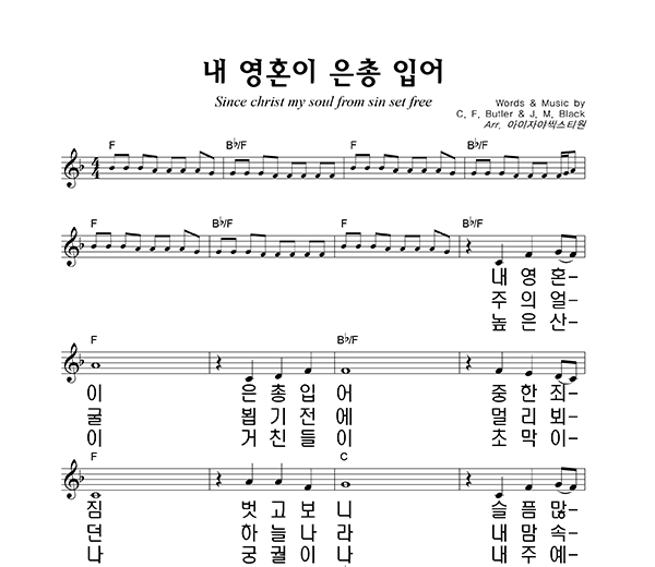 | 내 주의 보혈은 | 성가 2부 + 피아노 반주 |
