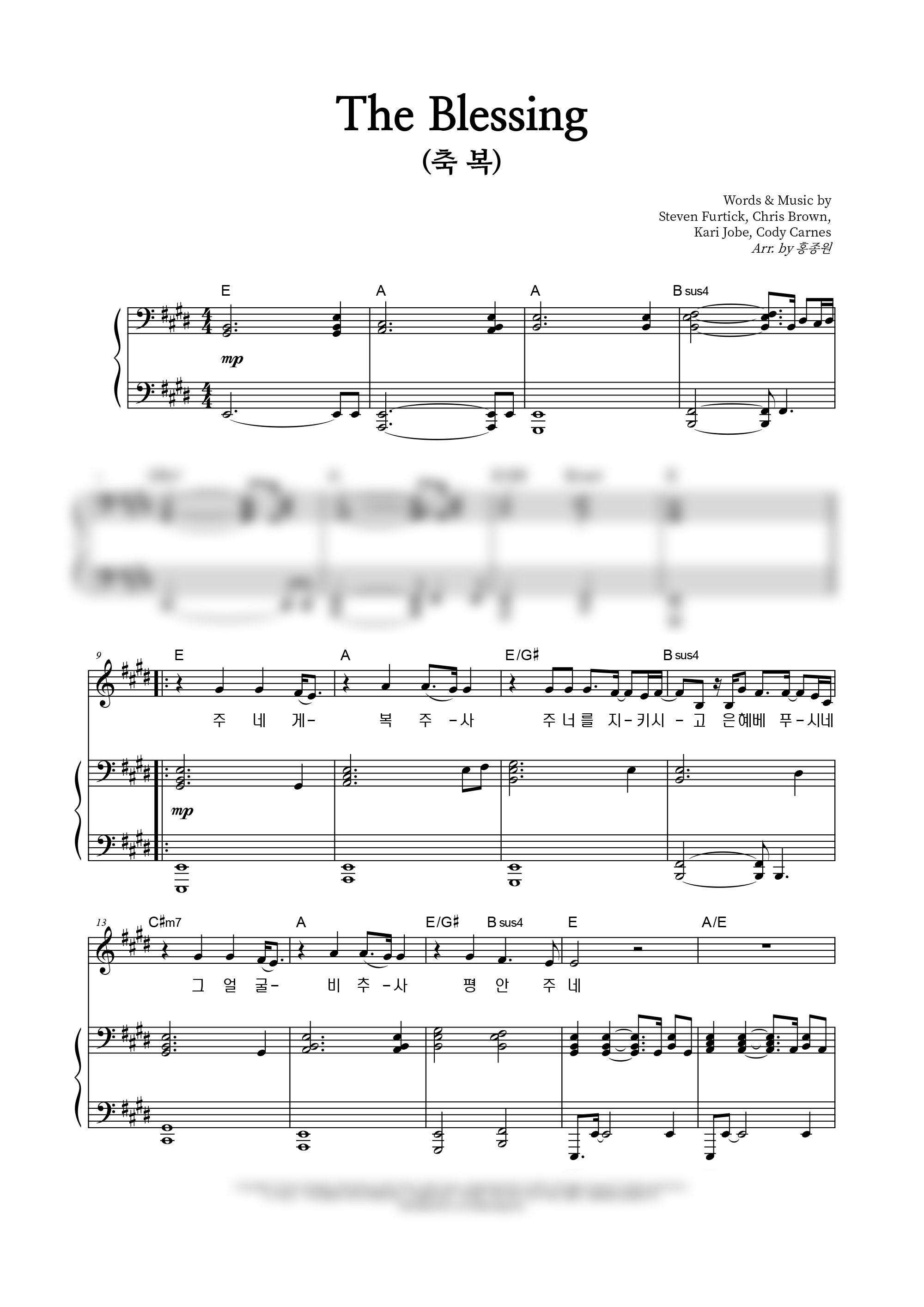 'The Blessing / 축복' 의 다른 악보형식