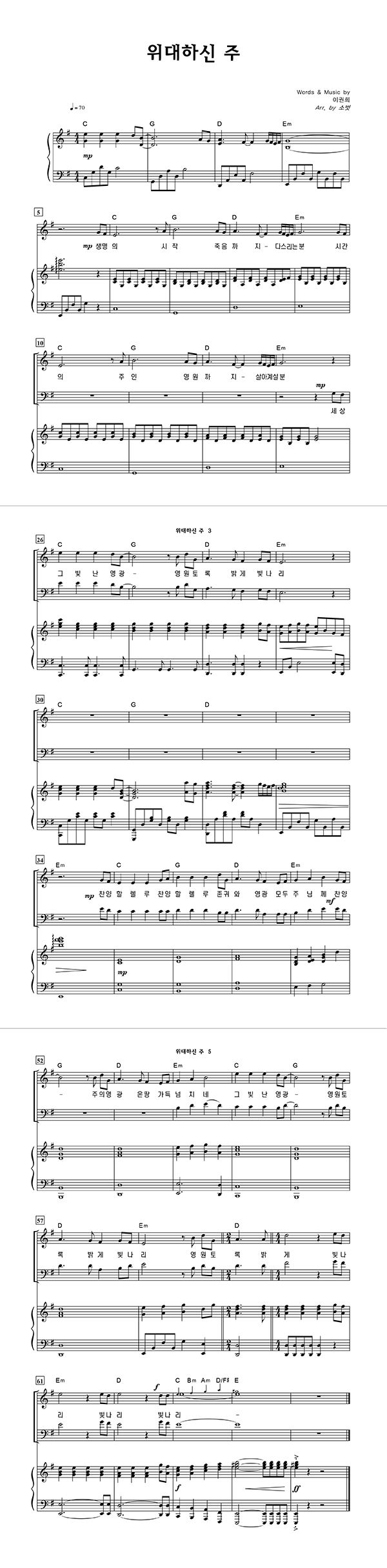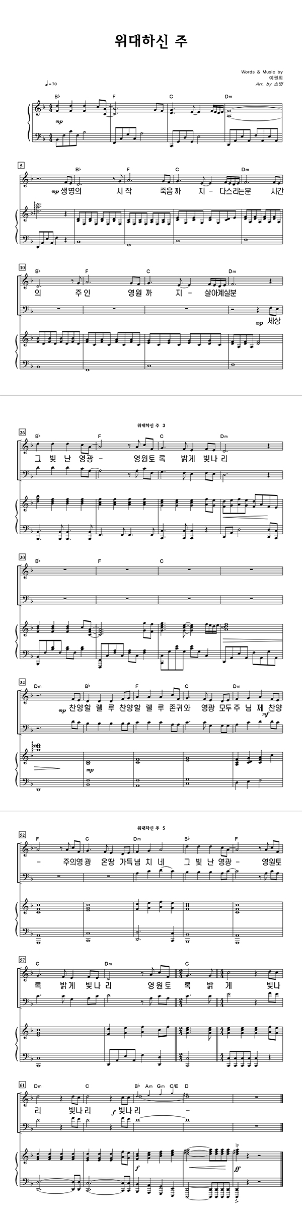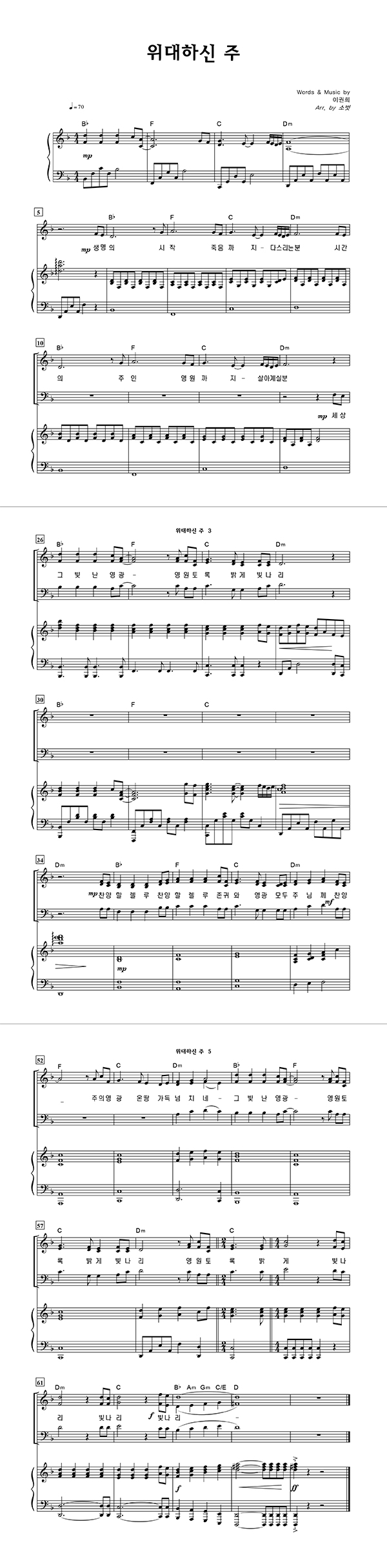 | 위대하신 주 | 성가 3부 + 피아노 반주 |