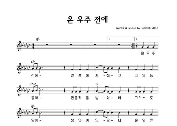 '온 우주 전에' 의 다른 악보형식