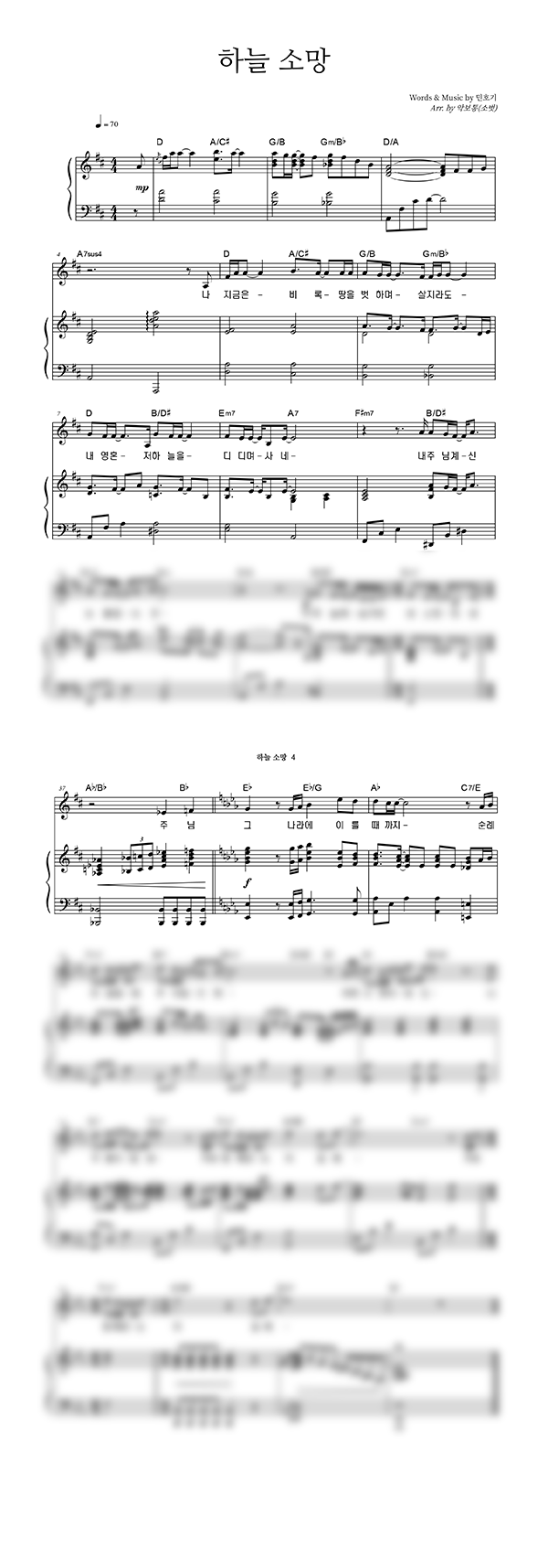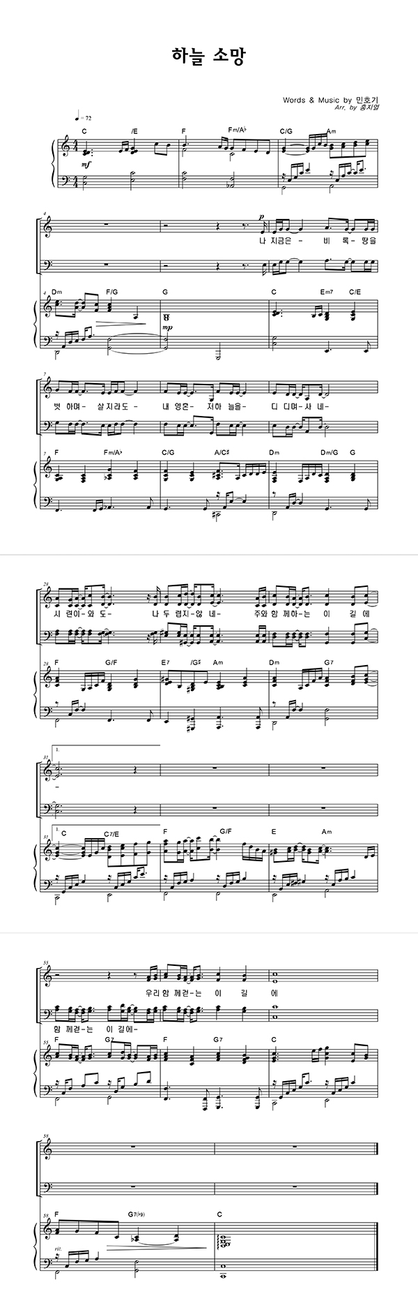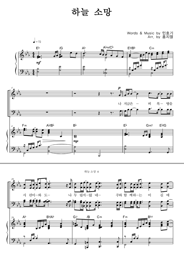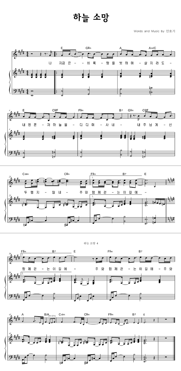 | 하늘 소망 | 성가 4부 + 피아노 반주 |