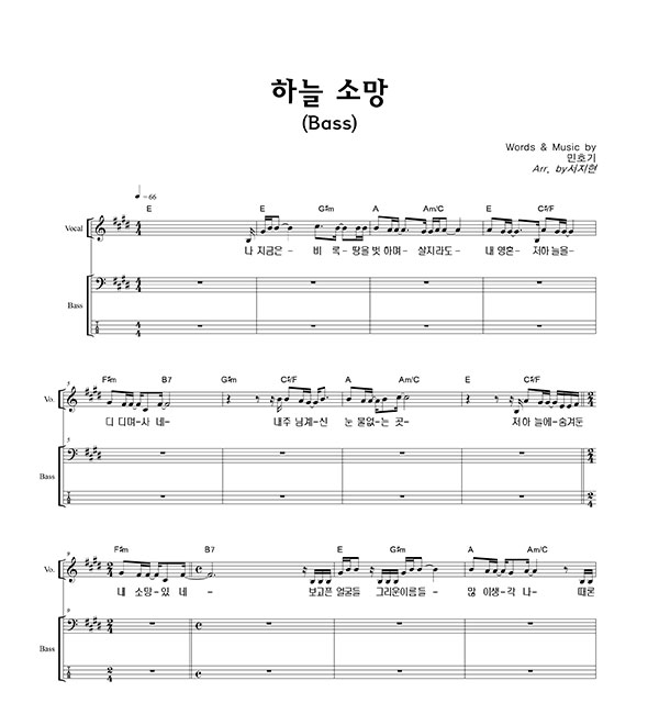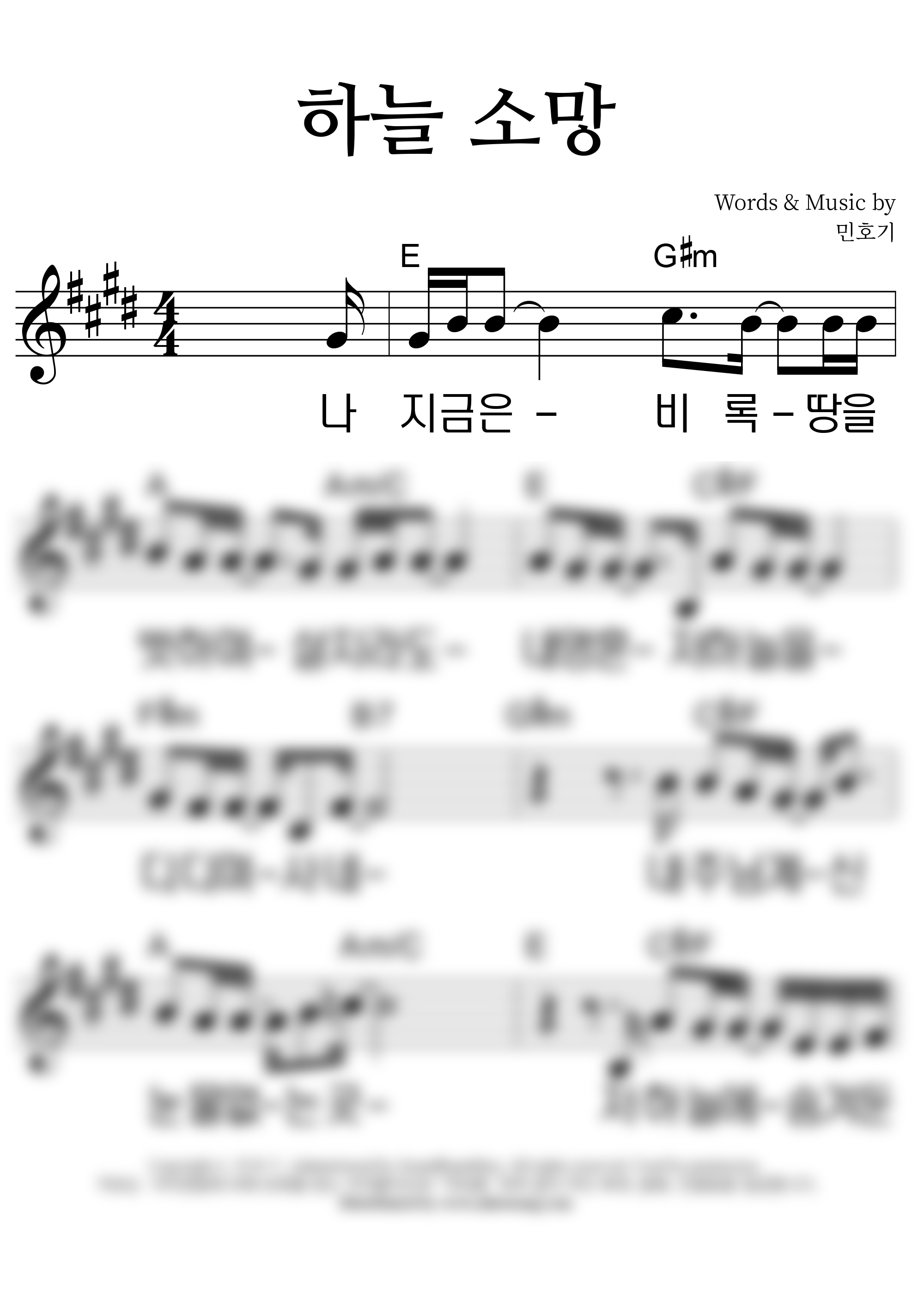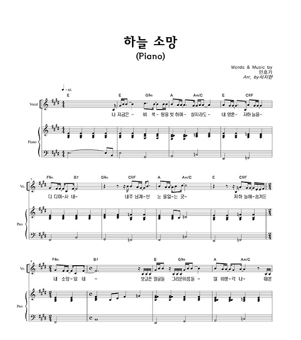 '하늘 소망' 의 다른 악보형식