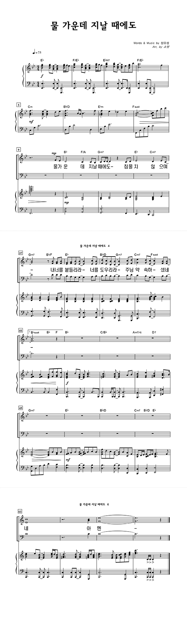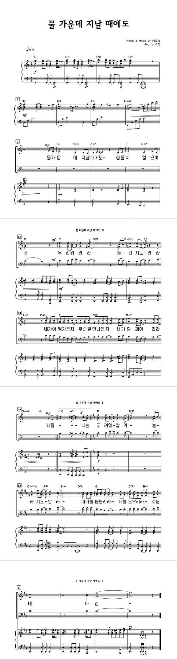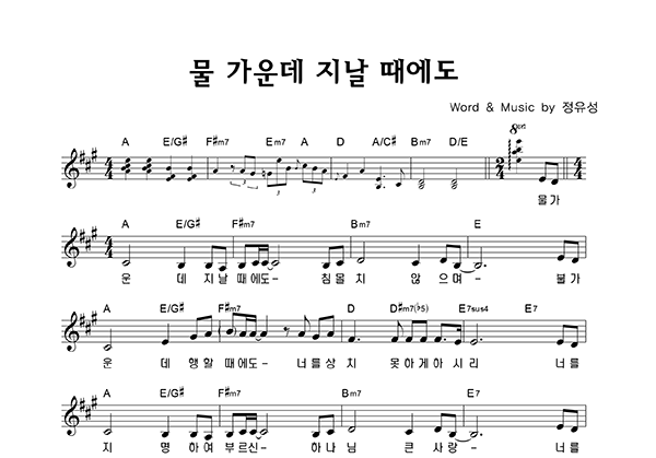 '물 가운데 지날 때에도' 의 다른 악보형식