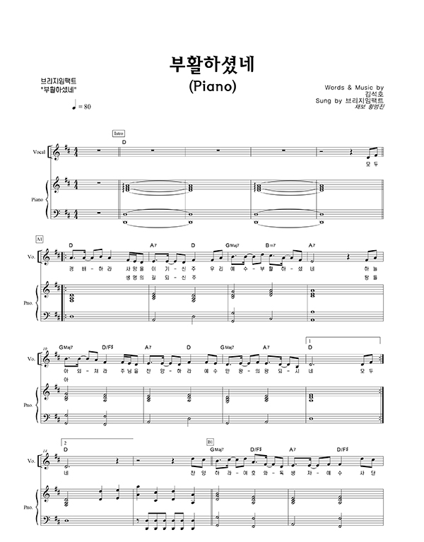 | 부활하셨네 | 성가 2부 + 피아노 반주 |
