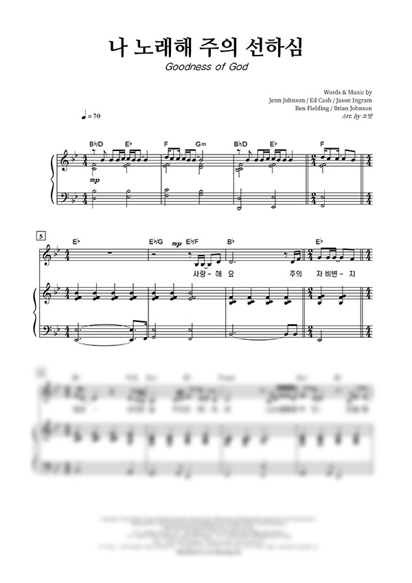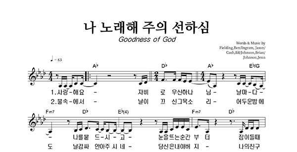 '나 노래해 주의 선하심' 의 다른 악보형식