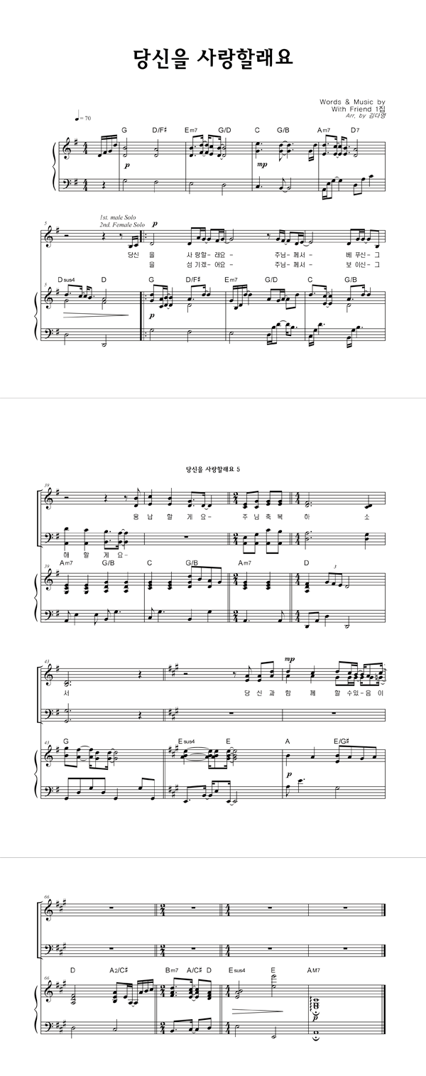 | 당신을 사랑할래요 | 성가 4부 + 피아노 반주 |