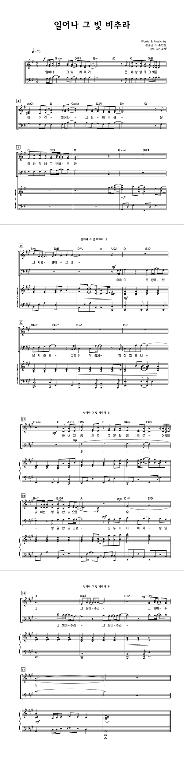 | 일어나 그 빛 비추라 | 성가 3부 + 피아노 반주 |