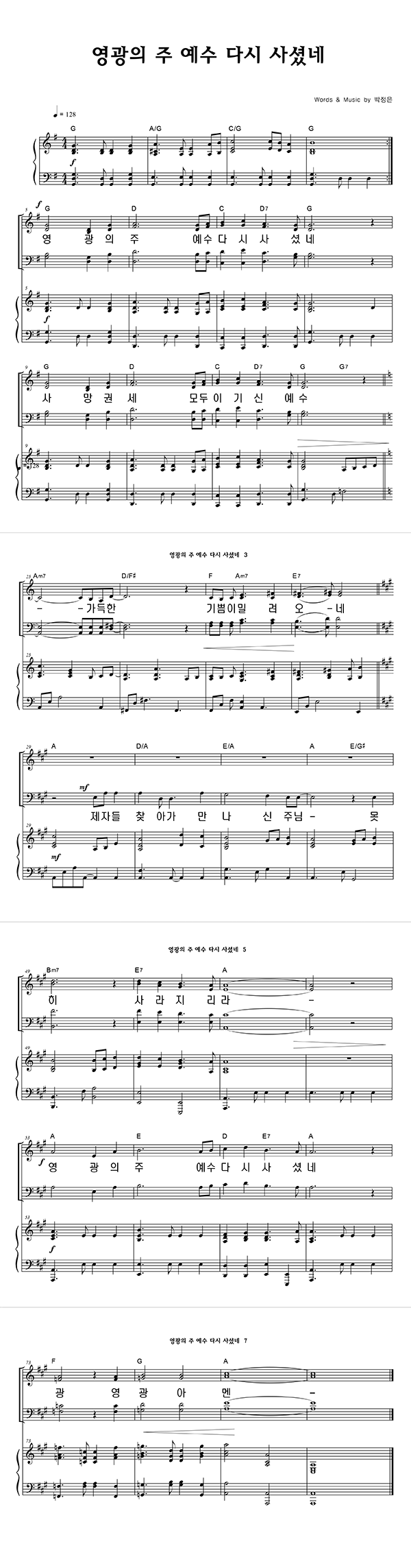 '영광의 주 예수 다시 사셨네' 의 다른 악보형식