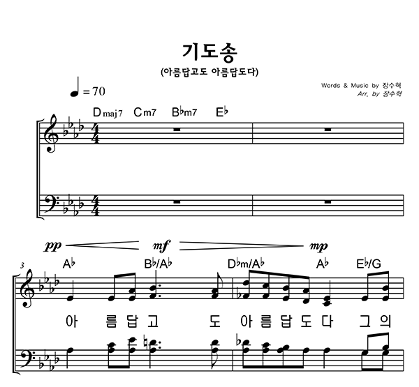 '아름답고 아름답도다(묵도송)' 의 다른 악보형식