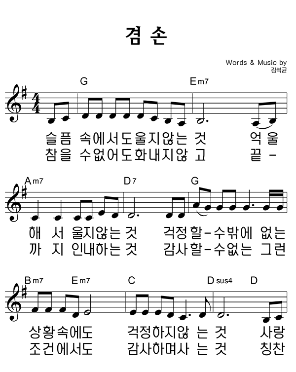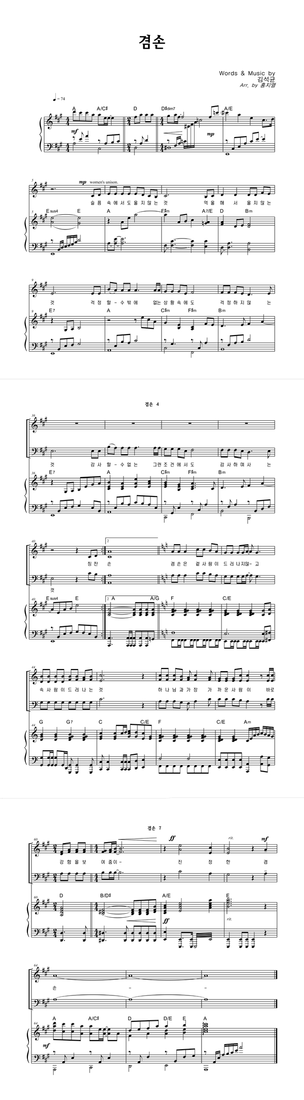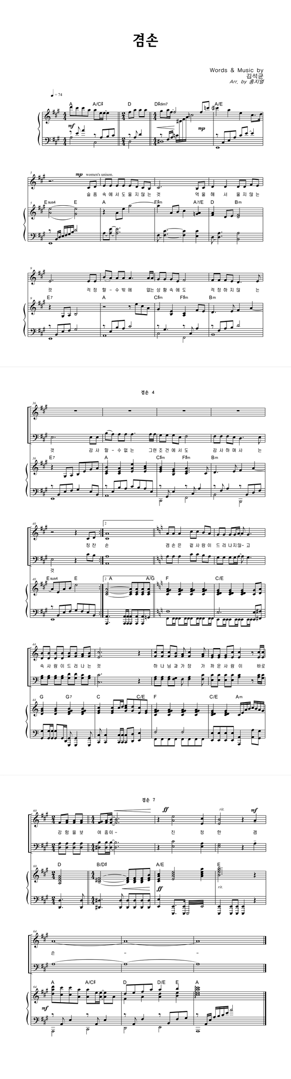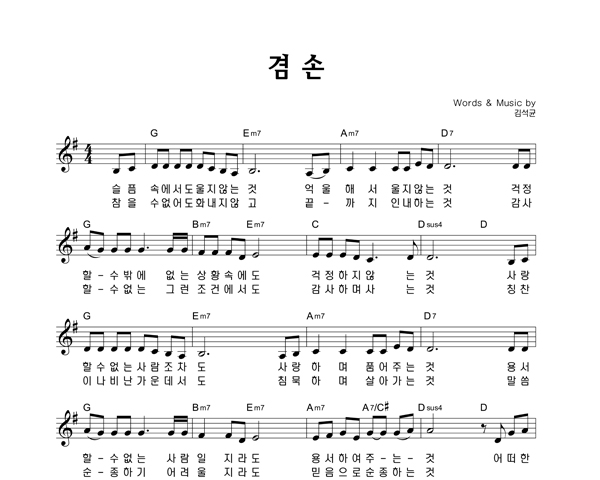 | 겸손 | 성가 4부 + 피아노 반주 |