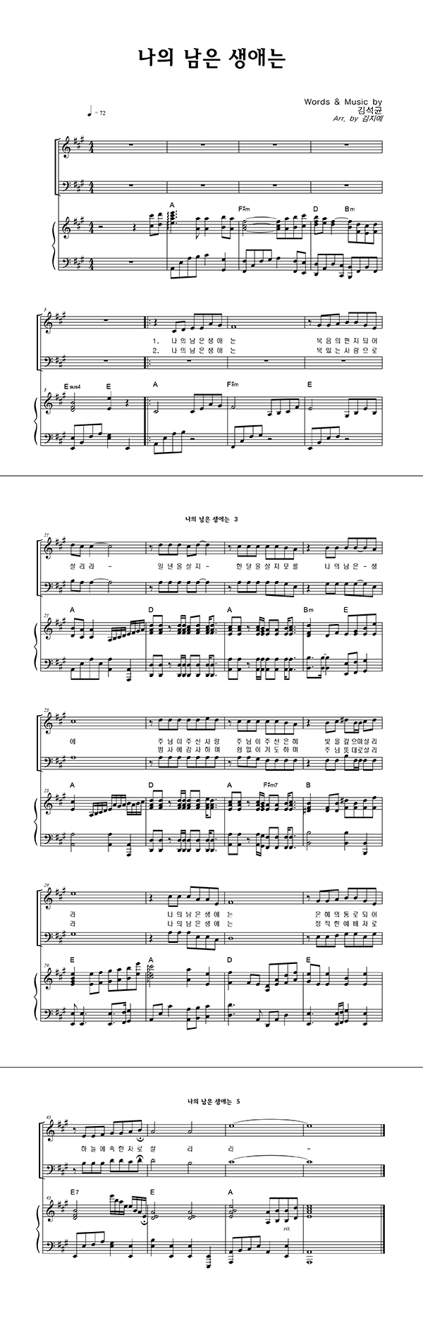 | 나의 남은 생애는 | 성가 3부 + 피아노 반주 |