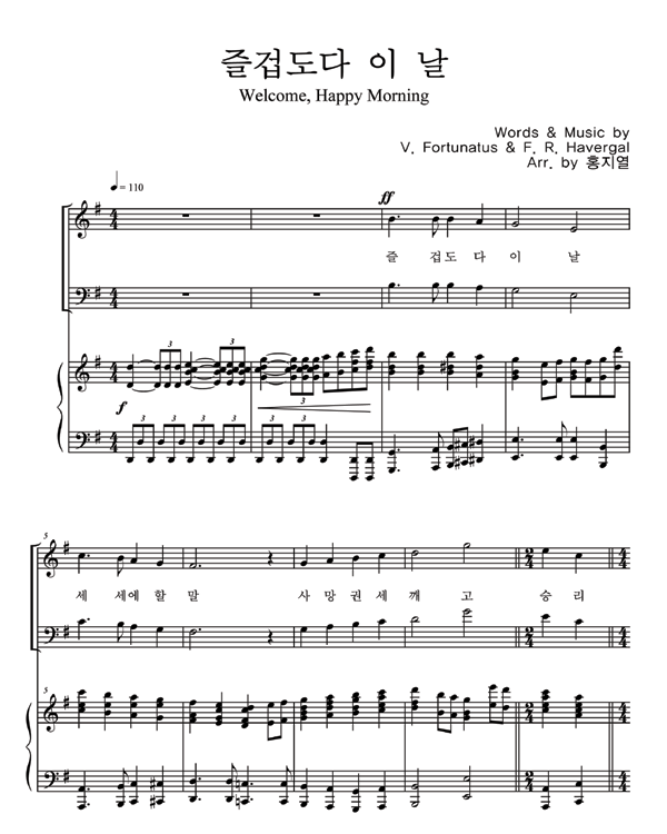 | 즐겁도다 이 날 (찬송가 167장) | 성가 4부 + 피아노 반주 |